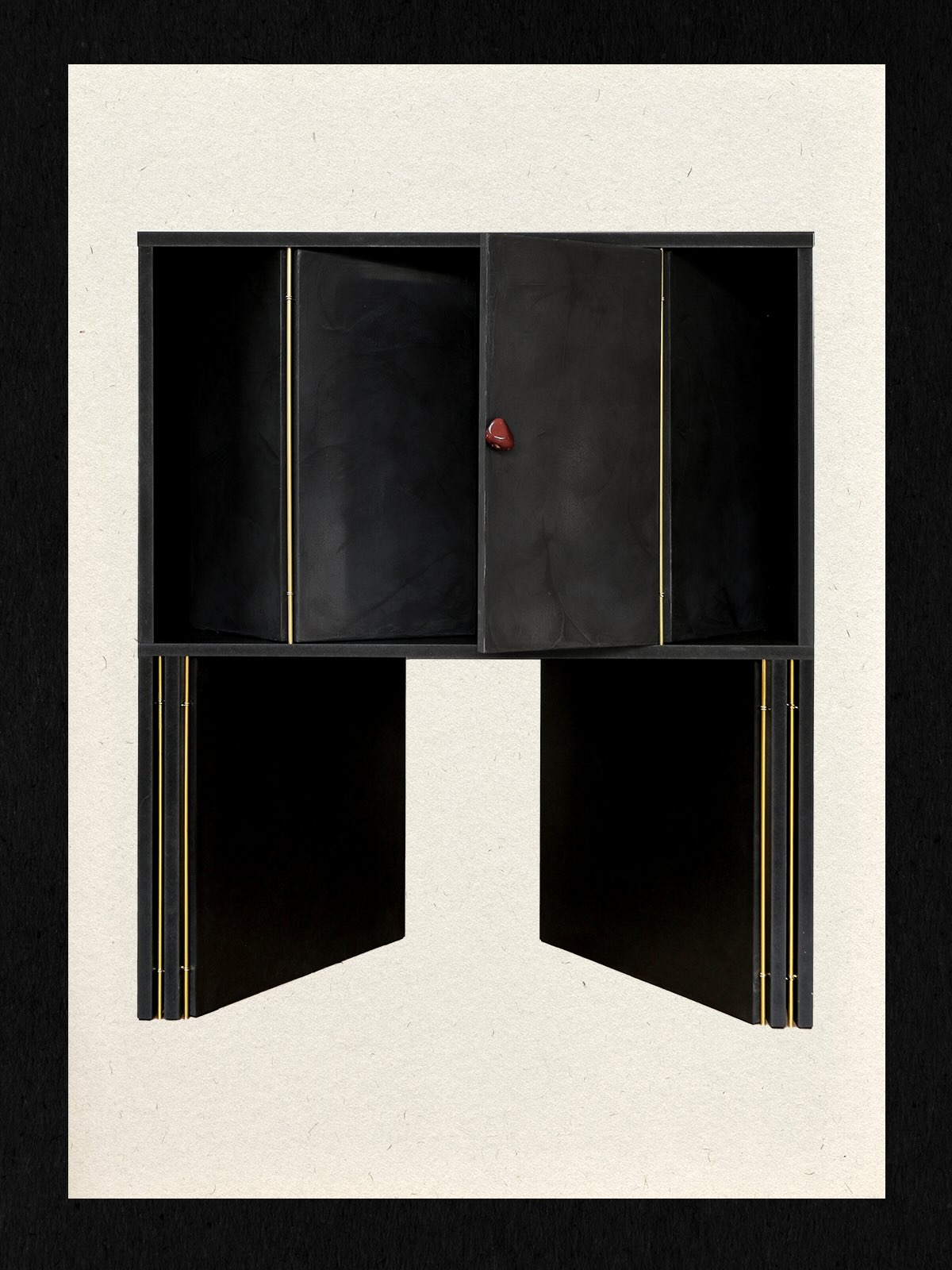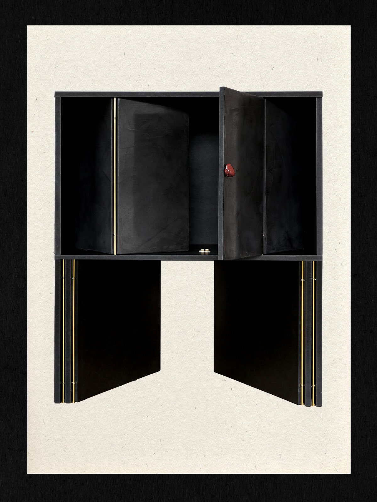 Cabinet 01 is a work from the Chamber Works collection, a series of collectible objects in which Djeric-Hunold translate their artistic language into functional form. These pieces are conceived not as furniture in the conventional sense, but as composed works: intimate in scale, precise in construction and inseparable from the philosophy that defines their practice.