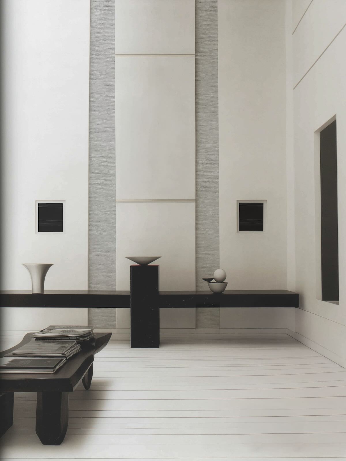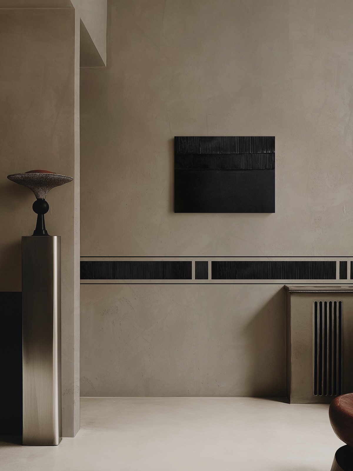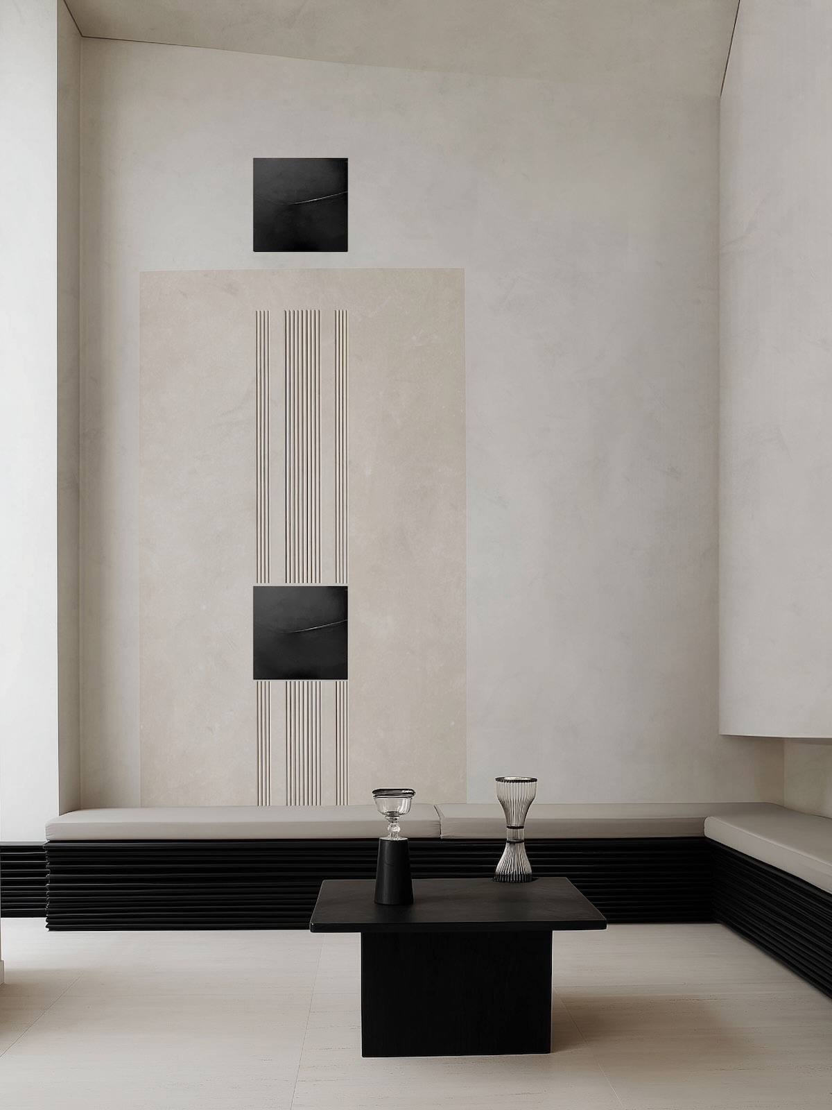 Working with pigmented plaster and reduced material systems, they establish precise relationships between surfaces, volumes and light. Black is used selectively as a structuring force that anchors space, directs attention and creates orientation.